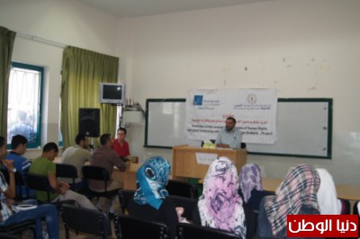 عقد مركز إعلام حقوق الإنسان والديمقراطية "شمس"ورشة عمل بعنوان " اتفاقية حقوق الطفل"، في كلية الشريعة بجامعة النجاح الوطنية ،وقد افتتح الورشة إبراهيم العبد من مركز "شمس"معرفاً بالمركز والمشروع ،وفي بداية اللقاء رحب في الحضور ومبيناً أن الورشة تأتي ضمن نشاطات مشروع: تعزيز مفاهيم حقوق الإنسان والحكم الصالح لطلبة الشريعة بدعم وتمويل من مؤسسة المستقبل.