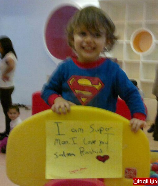 ومن إحدى الصور التي نشرتها سلمي , صورة لطفل صغير بزي سوبر مان يعبر عن حبه لسلمى .