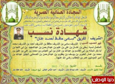 ائتلاف شباب القبائل العربية يبث شهادات نسب الفريق عنان للاشراف