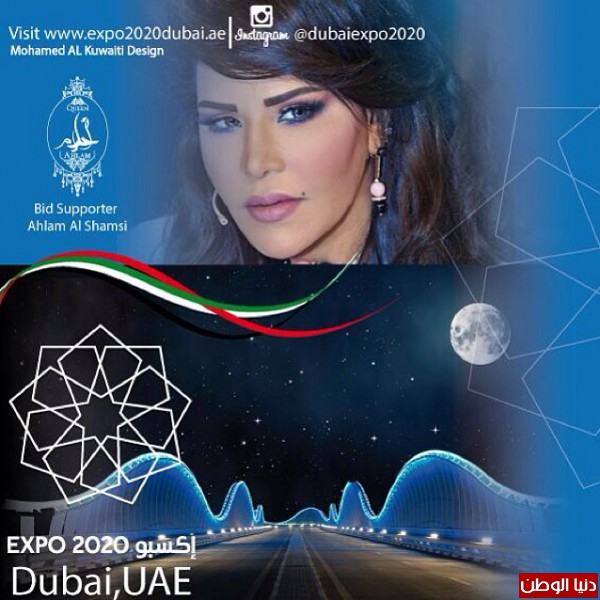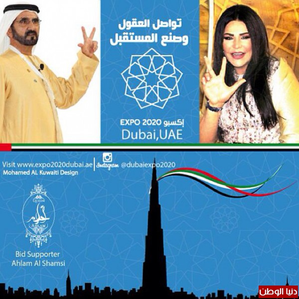 بعد أن أطلقت الفنانة الإماراتية أحلام " حملة لدعم لمدينة دبي - اكسبو 2020" بدأت تُروج لهذه الحملة عبر كل مواقع التواصل الاجتماعي الخاصة بها .