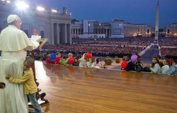جاء هذا أثناء تجمع الآلاف من العائلات أمام الفاتيكان احتفالا بيوم العائلات، ولم يتم التعرف على هوية الطفل، الذي كان يرتدي تيشرت أصفر وأخذ يلوح للجماهير ويحييهم من بين أقدام البابا أثناء القائه الكلمة.