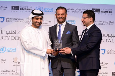 وجاء هذا التكريم ضمن الحفل السنوي الخامس عشر لعيادة "ليبرتي" لطب الأسنان لدعم وكالة الأمم المتحدة لتشغيل وإغاثة اللاجئين الفلسطينيين في الشرق الأدنى "الأونروا"، ليلة أمس، في أبراج الإمارات، بحضور الشيخ جمعة بن مكتوم آل مكتوم العضو المنتدب لمركز راشد للمعاقين، ومحمد عساف السفير الإقليمي للأونروا ونجم "أراب آيدول"، وحشد كبير من نجوم الفن والدراما العرب والأجانب، وكبار الإعلامين والشخصيات المجتمعية من أكاديميين ورؤساء هيئات ومؤسسات حكومية وخاصة.