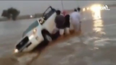 بالفيديو: سعودية تضحي بحياتها لإنقاذ زوجها من سيول عرعر