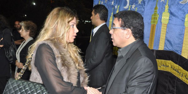 وقد بدا على رزان علامات الحمل من زيادة في الوزن وإرهاق وجهها , وذلك في عزاء المخرجة المصرية رشا يحيى .