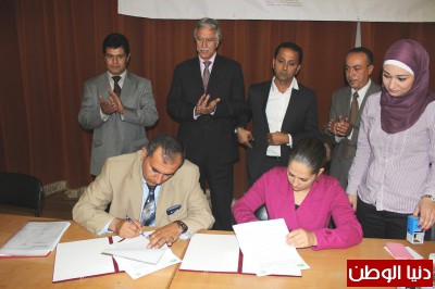 وقعت ،اليوم،جامعة فلسطين التقنية – خضوري ومركز التمكين الاقتصادي للشباب في منتدى شارك الشبابي مذكر ة تفاهم في مسرح الشهيد ياسر عرفات بالحرم الجامعي لجامعة خضوري بهدف تعزيز وحدة التوظيف الجامعية لتدريب وتأهيل الشباب الخريج من خلال تنفيذ مجموعة من البرامج والمشاريع بالتعاون مع مؤسسة الشباب الدولية وبدعم من الوكالة الأمريكية للتنمية الدولية ، وقد وقع الاتفاقية عن الجامعة عميد الشؤون الطلابية ا. منذر نصرالله ، وعن منتدى شارك الشبابي السيدة سحر عثمان- مديرة التمكين الاقتصادي/ منتدى شارك ، وذلك بحضور رئيس الجامعة الأستاذ الدكتور مروان عورتاني، ومدير مؤسسة الشباب الدولي د. محمد مبيض ونائب رئيس الجامعة للشؤون الأكاديمية د. احمد الرمحي وعدد من عمداء وأساتذة الجامعة وحشد كبير من طلبة الجامعة في المراحل الدراسية المتقدمة.