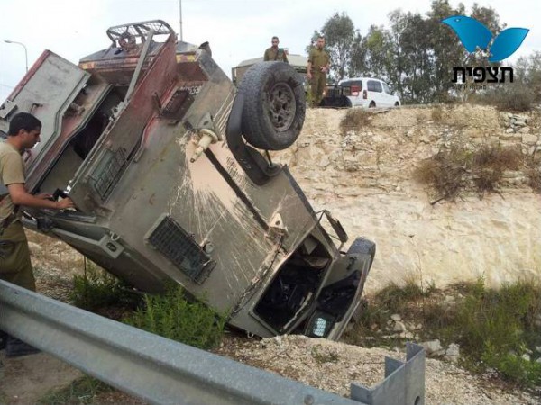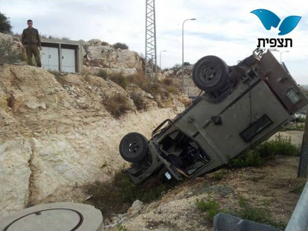 بالصور.. اصابة جنديين إسرائيليين في انقلاب جيبهم العسكري في الضفة