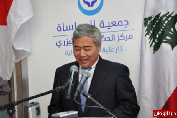 ثم ألقى السفير الياباني في لبنان سييتشي أوتسوكا كلمة باللغة العربيّة مهنئاً الجمعيّة بإعادة تأهيل مركز الدكتور نزيه البزري للرعاية الصحية الأولية، بهبة من السفارة اليابانية ضمن برنامج المساعدات الأهلية الذي يهدف إلى تعزيز الإنماء الإقتصادي والإجتماعي في لبنان.