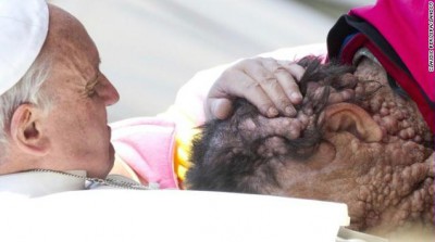 المعانقة بين البابا فرنسيس وهذا الرجل المريض، أذابت قلوب الملايين عبر مختلف أنحاء الأرض، وسرت في مواقع التواصل الاجتماعي سريان النار في الهشيم.فقد عانق الحبر الأعظم رجلا تسبب مرض نادر في تغيير ملامحه وتدمير وجهه لدرجة مرعبة ورغم ذلك وضع البابا يديه على رأسه ليصلي من أجله. وجرت المعانقة في الفاتيكان الأربعاء في التجمع العام الذي ضم 50 ألف شخص، وسرعان ما سيطرت على تعليقات المغردين وحتى من ضمن الملحدين.