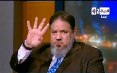 حديث "معتز" لم يعجب ضيفه، فعقب قائلاً: "لماذا تنزعج ممن ينزلون إلى الشوارع، ويشيرون بإشارات (رابعة)"، ثم ما لبث أن أشار بالعلامة في وجه "معتز"ن فرد الأخير "من قال لك إنني منزعج؟".