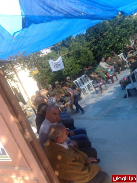 قدم قائد منطقة جنين العميد أركان حرب فتحي التايه يرافقه مجموعة من ضباط قوات الأمن الوطني التعازي والمواساة باسم اللواء نضال أبو دخان قائد قوات الأمن الوطني لعائلة الشهيد.