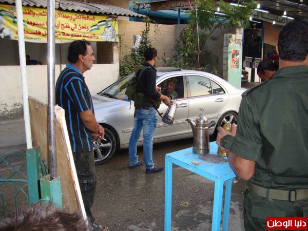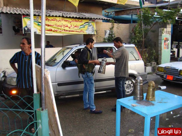 قامت شبيبة حركة فتح بتوزيع القهوة والملصقات الخاصة بصور الشهيد عرفات على المارة والسيارات.