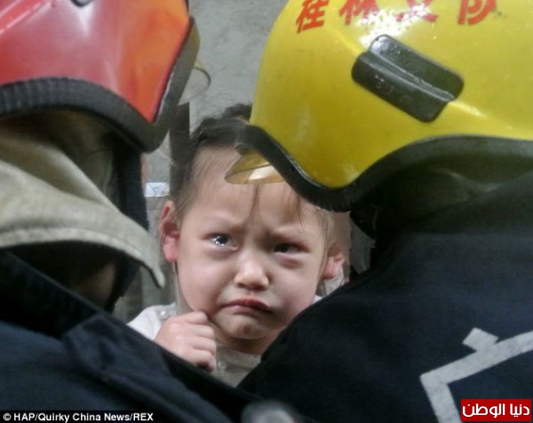 وتم استدعاء رجال الإطفاء حين سمع المارة صراخ وبكاء الطفلة " شيو وانغ " بعد أن أصبح رأسها عالقا في شباك النافذة المصمم للحماية من اللصوص.