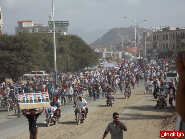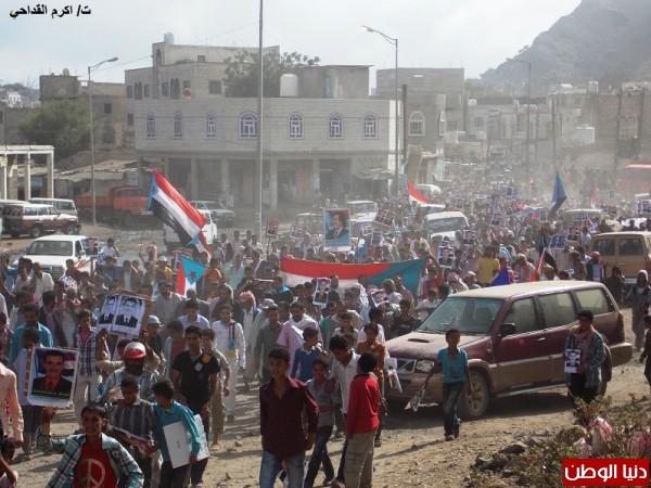 الذي تدين جريمة مقتل الشهيد الجحافي والمطالبة سلطات الاحتلال بالرحيل الفوري من الضالع والجنوب ومرددين الهتافات والشعارات الثورية المعبرة تقدم المسيرة عدد كبير من قيادات الثورة الجنوبية يتقدمهم المناضل شلال علي شايع نائب رئس المجلس الاعلى للثورة السلمية لتحرير الجنوب رئيس مجلس الثورة بمحافظة الضالع والمناضل صلاح الشنفرة النائب الاول لرئيس المجلس الاعلى للحراك السلمي لتحرير الجنوب ورائد الجحافي رئيس الحركة الشابية والطلابية لتحرير الجنوب بمحافظة الضالع وجميع رؤساء قوى التحرير والاستقلال ونقابات ومنضمات المجتمع المدني الجنوبي والهيئة الشرعية وعدد من المشائخ والاعيان والواجهات القبلية والدكاترة والاعلاميين والمناضلين من ابناء الجنوب .