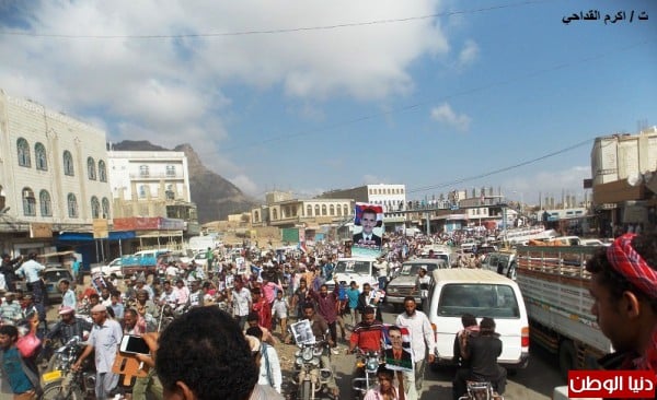 عشرات الآلاف من ابناء الضالع والجنوب يشيعون الشهيد عبدالحكيم الجحافي الى مثواة الاخير