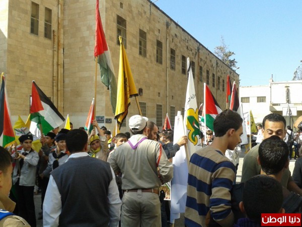 وتلاها مشاركة لطالبات المدرسة ببعض الاستعراضات الكشفية المتمثلة في حمل العلم الفلسطيني وصور الشهيد الرمز ابو