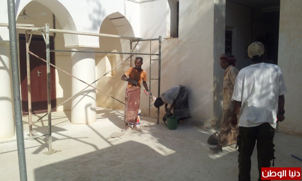 الجملة بدائت صباح اليوم بمشاركة اكثر من 10شباب متطوعون ومختلفي المهارات في المهن وتم البداء في ترميم احدى اقدم المساجد بمنطقة الخلي فالا وهو مسجد السلطان والذي يعد من اقدم المساجد بالمدينة ؛ الشباب انقسم والى فريقين الفريق الاول قام بتنفيذ المرحلة الاولى من الترميم باخل المسجد وصحن المصلى عبر قشط وازاله ترسبات الطلاء القديم المعمول من النوره واستبدالها كاملة بطبقتين من طلاء النورة المعمول محليا ,فيما قام الفريق الاخر بتنضيف اماكن الوضوء وتهيئتها وقاموا ايضا بتعبئة بعض الشقوق في الجدران لتكون جاهزة للفريق الاول والمخصص بالقشط والطلاء .