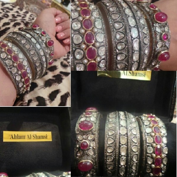 ونشرت أحلام صورة " يدها " وهي ترتدي أساور ثمينة فاخرة مرصعة بالأحجار الكريمة وعلقت : " هدية غاليه من الغاليه الشيخة وضحه بنت أحمد ال ثاني ام المعرس الله يهنيهم غنيت لهم يوم 7نوفمبر وهاذي هديه منهم الله لايحرمني منهم " .