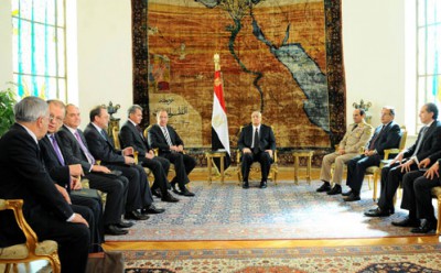 استقبل الرئيس عدلي منصور بمقر رئاسة الجمهورية وزيرى خارجية ودفاع روسيا الاتحادية سيرجي لافروف والجنرال سيرجي شويجو قبل مغادرتهما القاهرة اليوم بحضور ميخائيل بوجدانوف نائب وزير خارجية روسيا الاتحادية المبعوث الخاص للرئيس الروسي حول الشرق الأوسط، وسيرجي كيربيتشينكو سفير روسيا الاتحادية بالقاهرة