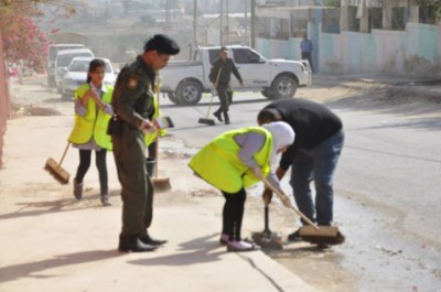 نظمت جمعيه المركز النسوي بمخيم عين السلطان بتعاون مع قوات الأمن الوطني دائرة العلاقات العامة والاعلام / اريحا _ دائرة العلاقات الانسانية و دائرة الاتصال الجماهيري اليوم الخميس , يوماً تطوعياً لتنظيف الشارع الرئيسي لمدخل مخيم عين السلطان في أريحا.