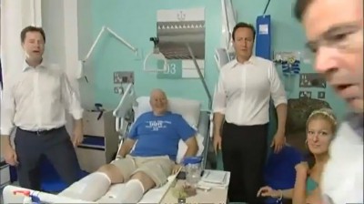 بينما كان رئيس الوزراء البريطاني، ديفيد كاميرون، يقوم بجولة تفقدية في مستشفي في لندن، فوجئ هو وطاقم تصويره بثورة عارمة للطبيب المسؤول الذي أبدى اعتراضه على عدم التزام المصورين بقواعد النظافة والتعقيم داخل المستشفى وطلب خروجهم من الغرفة على الفور