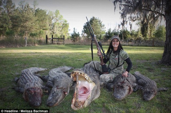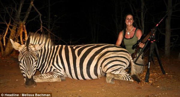 أثارت المذيعة ميليسا باخمان الغضب حين نشرت صورة لأسد ذكر ناضج قالت أنها أطلقت النار عليه وقتله , وتصورت بجانبه ونشرت الصورة عبر الفيس بوك وتويتر .