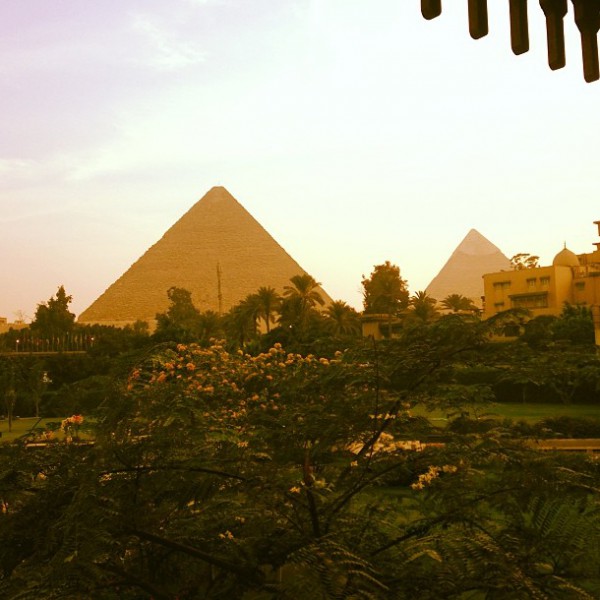 ونشرت صورة للإطلالة من غرفتها والتي تظهر من خلالها الأهرامات وكتبت: " هيا لنزلزل الأهرامات "
