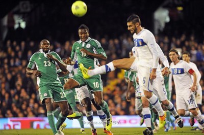 احتفل المنتخب النيجيري لكرة القدم بتأهله إلى نهائيات كأس العالم 2014 بالبرازيل عبر تعادل مين بطعم الفوز مع نظيره الإيطالي 2/2 مساء الاثنين على استاد "كرافن كوتيدج" بالعاصمة البريطانية لندن في إطار استعدادات الفريقين للمونديال.