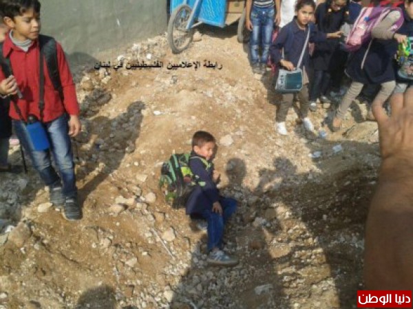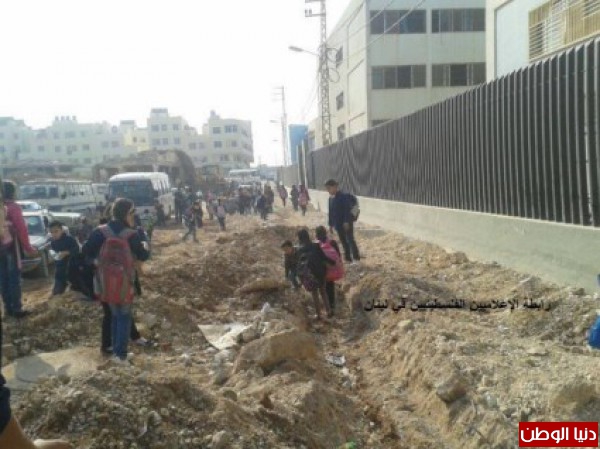 منذ قرابة الأسبوع باشرت الأونروا بشق الشارع العام الملاصق للمدارس لتزفيته وإقامة رصيف للمشاة، لكن غاب عن بال الأونروا أن هذا الشارع هو ممر مشاة يومي للمعلمين ولطلاب المدارس من الصفوف الابتدائية أو المتوسطة، فيخرج المارون من هذه الحفر كالمارون في الأنفاق العسكرية، فيضيع هدف التعليم وتغيب البيئة المناسبة لذلك.