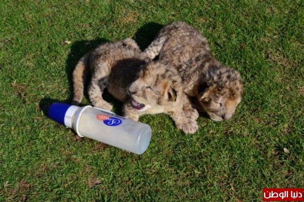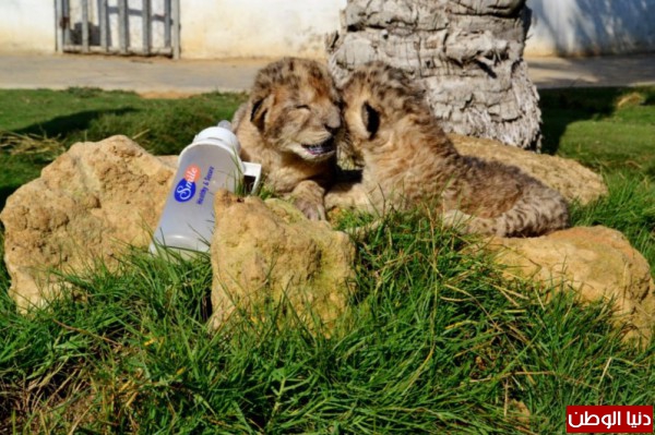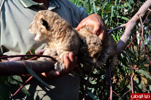 اللبؤة تعرضت لقصف إسرائيلي فأجهضت : شاهد بالصور.. غزة تشهد ولادة "أسدين"