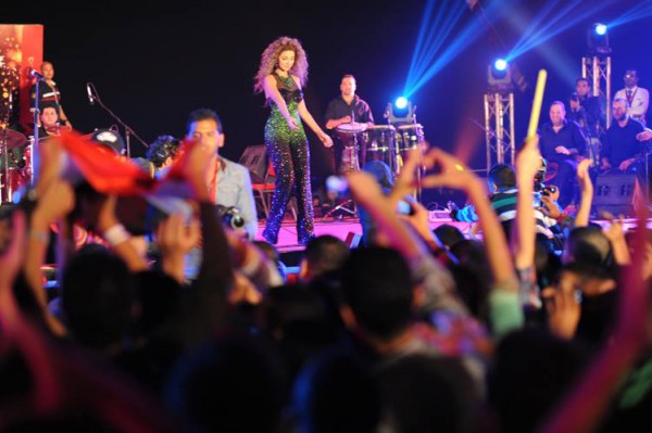 وغنت ميريام في الحفلة المجانية مجموعة من أغانيها حاملة العلم المصري.