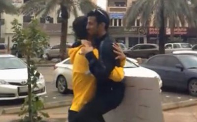 في السعودية: بالفيديو.. ضبط شابين يمارسان "العناق المجاني"