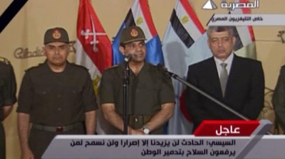 وأكد وزير الدفاع المصري أن كل من رفع السلاح على الجيش والشرطة فهو إرهابي ومجرم، لأنه يريد أن يدمر بلده ويقهر شعبه، مضيفاً: "احنا موجودين عشان نمنع ونحارب ده".