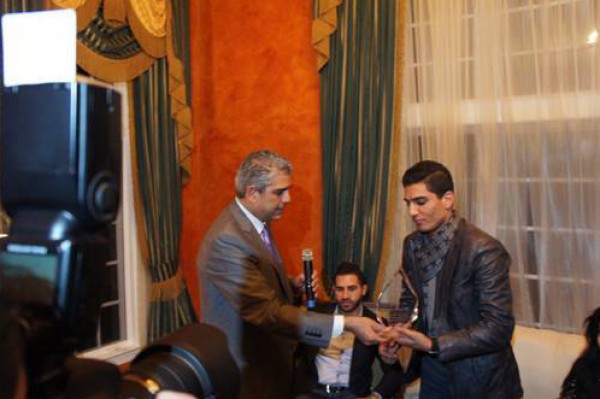 كرم رئيس المفوضية العامة لمنظمة التحرير في الولايات المتحدة السفير معن عريقات، بحضور عدد من أبناء الجالية الفلسطينية في واشنطن مساء الاربعاء، الفنان الفلسطيني محمد عساف، وقدم له درعاً باسم المفوضية العامة، تقديراً لدوره في عرض الصورة المشرقة للشعب الفلسطيني وفي نشر رسائل السلام والمحبة عن طريق الفن والأغنية .