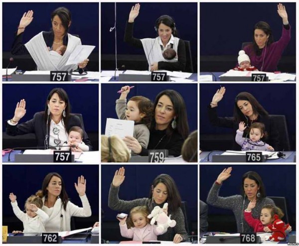 الإيطالية "Licia Ronzulli - ليشيا رينزولي" عضوة البرلمان الأوروبي اعتادت أن تأخذت ابنتها لجلسات البرلمان منذ ولادتها ولمدة 3 سنوات حتى الآن