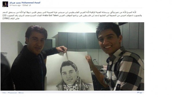 فقد نشر عساف عبر صفحته صورة تجمعه بمشترك Arabs Got Talent وكتب : " لأنه المبدع لأنه من تميز وتألق برسماته الفنية الراقية لأنه العربي الفلسطيني ابن مدينتي غزة الحبيبة التي ينبض قلبي شوقا لها لأنه من يستحق الدعم والتصويت ادعوكم احبتي من المحيط الي الخليج لدعم ابن فلسطين في برنامج المواهب العربي Arabs Got Talent الفنان المبدع محمد الديري رقم التصويت (23) على الرقم (37892) "