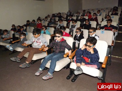 عرض برنامج الدعم النفسي والاجتماعيفي جمعية رعاية المعوقين "شمس" لعدد من أطفال روضة الياسمين الأحد فيلما كرتونياَبتقنية ""3D بعنوان "الذئب والخراف" في قاعة السينما والمسرح "”Sunriseفي مقر الجمعية.