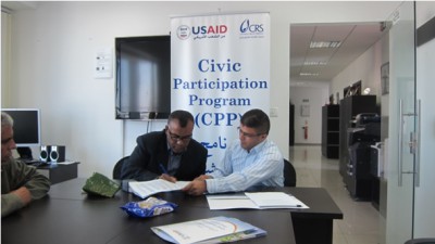 وقع مدير المركز الفلسطيني للديمقراطية ( أ. احمد ابو عايش ) بتاريخ 3/11/2013 منحة لمشروع المواطنة الفاعلة في تفعيل اجراءات حماية المستهلك ( السنة الثانية ) الممول من الوكالة الأمريكية للتنمية الدولية ( USAID) وبالشراكة مع مع خدمات الاغاثة الكاثوليكية CRS ضمن برنامج تعزيز مشاركة المجتمع المدني CPP ، حيث تم التوقيع في مؤسسة خدمات الاغاثة الكاثوليكية في محافظة رام الله .