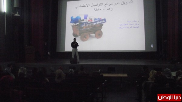 فيما تطرق الباحث د.خالد ربايعة من الجامعة العربية الأمريكية الى مفاهيم عدة تتعلق بواقع شبكات التواصل الإجتماعي و تأثيرها على تطوير أعمال الرياديين، و كيفية التعامل مع شبكات التواصل الأجتماعي بما يحقق النجاح في إدارة المشروع الريادي و تسويقه، عارضاً بعض الحقائق الرقمية حول طبيعة إستخدام شبكات التواصل الإجتماعي عربياً و عالمياً.