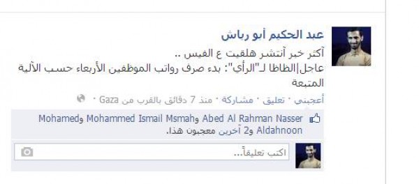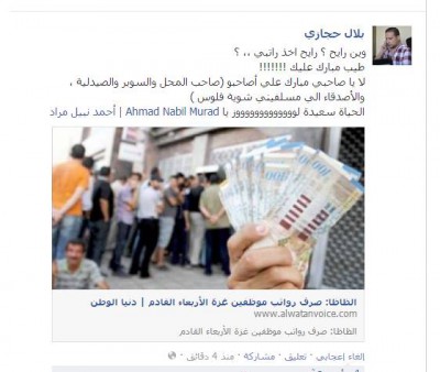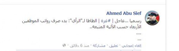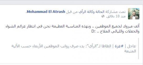 بالصور.. الفيس بوك يحتفل بصرف رواتب الموظفين في حكومة غزة