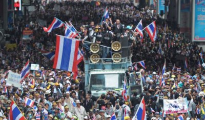 وأضاف "إذا لم يتوقف الموظفون عن العمل، فإننا سنحتل كل الوزارات غدا لنظهر أن نظام تاكسين لا يملك الشرعية لقيادة البلاد"، في إشارة إلى رئيس الوزراء السابق تاكسين شيناوترا المقيم في المنفى، لكنه ما زال في صلب سياسة المملكة.