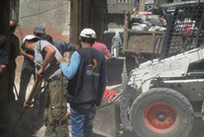 شاهد بالفيديو تواصل عمليات النظافة في مخيم اليرموك، من قبل الهيئات الإغاثية "جفرا - هيئة فلسطين الخيرية "