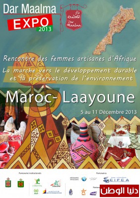 قادمات من العديد من المدن والقرى المغربية وأيضا من مدن إفريقية ووجهتهن مدينة العيونّ، عاصمة الصحراء المغربية. موعد جديد وليس بالأخير ينتظر عضوات شبكة الصانعات التقليديات بالمغرب "دار المعلمة" وضيفاتهن الافريقيات ويتعلق الأمر بالدورة الخامسة لمعرض دار المعلمة والمنظم بمدينة العيون من 5 الى 11 دجنبر 2013.