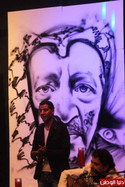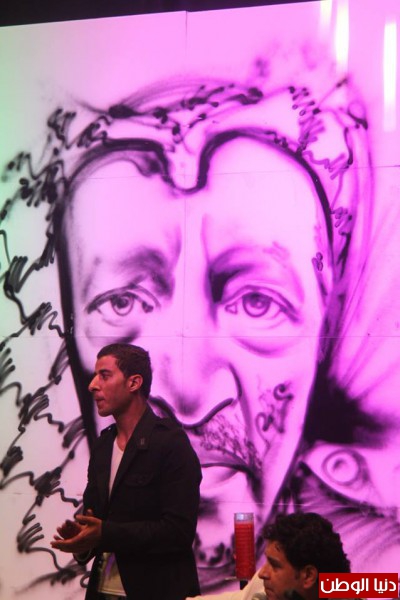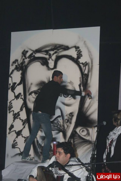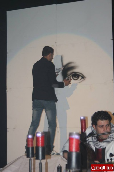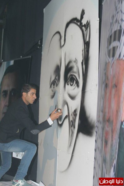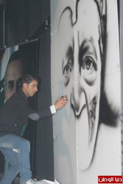 وزين الديري المسرح بأدائه الرائع في رسم " وجهه المفضل" وهو الشهيد ياسر عرفات وقدم لوحة رائعة وخصص بكل تواضع وقتا لكل معجبيه اللذين أرادو أن يلتقطوا الصور معه وشارك هذه الصور مع جماهيره عبر الفيس بوك .