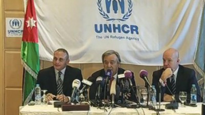 دعا المفوض السامي للأمم المتحدة للاجئين، أنتونيو غوتيريس، الخميس، الأردن إلى استقبال المزيد من اللاجئين السوريين داخل أراضيها، مشيراً إلى ضرورة توفير ملاذات آمنة للسوريين الهاربين من النزاع في المنطقة.