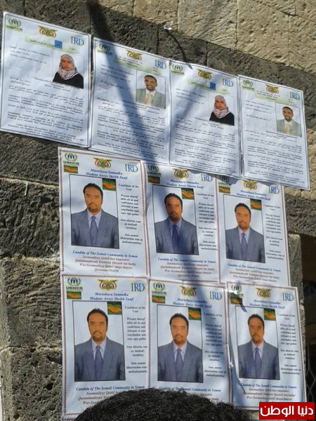 اجرت المفوضية السامية لشئون اللاجئين مكتب اليمن بالتعاون مع منظمة الاغاثة والتنمية الدولية , اليوم الانتخابات المدنية للاجئين الصوماليين المتواجدين في صنعاء والتي من خلالها يحق لقرابة 14500 لاجيء انتخاب 15 ممثلا عنهم من اصل 39 مرشح سينقلون عنهم معاناتهم ومشاكلهم ويبثون همومهم