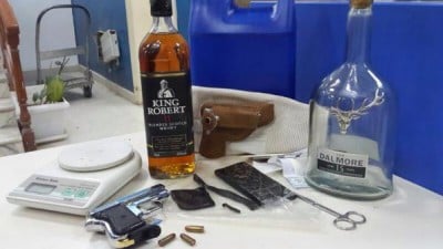وتشير المعلومات إلى أن أعضاء الهيئة وبعد ورود معلومات عن الشخص، أعدت كميناً عن طريق التبايع معه على قارورة خمر، وجرى خلال ذلك القبض عليه وضُبطت بحوزته كمية خمر محلي الصنع وسلاح ناري وذخيرة حية وعدد من قطع الحشيش، وميزان إلكتروني لوزن الحشيش، ومقص.