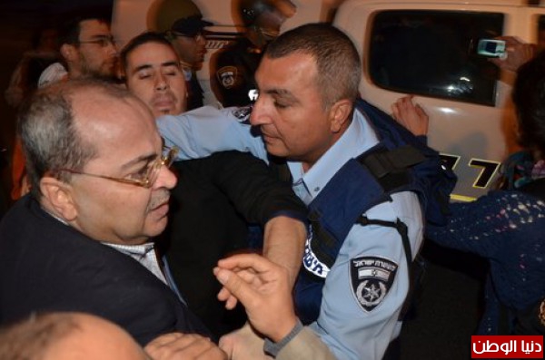 حيث تم فيها الاعتداء على النائب د.احمد الطيبي جراء محاولته لتحرير فتى معتقل من قبل ايدي عناصر الشرطة.