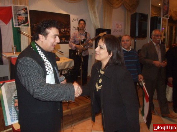 وقد صدح صوت الفنان الفلسطيني مطرب برلين الأول محمود أبو خليل.. ابن المخيم.. الذي كبر وترعرع في الشتات.. ومن شتات إلى شتات وهو يبحث عن وطن.. ولا ننسى الأخ الفنان خالد مهنا.. والأخ الفنان أسامة والأخ الفنان عيسى إدريس والأخ الفنان وليد الوني الذين يشاركونا كل المناسبات الوطنية..