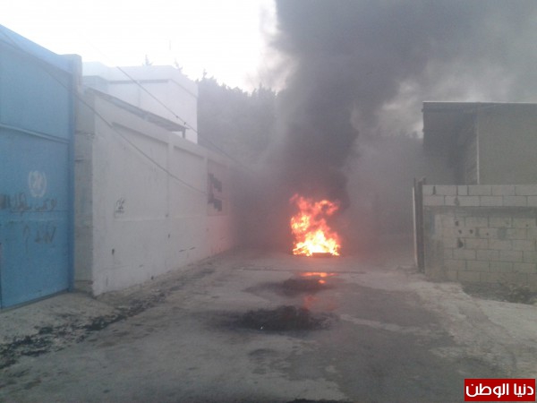 احراق اطارات واقفال المدارس في مخيم البرج الشمالي وذلك بسبب معانات الشباب الذين لا يعملون ويطالبون الاونروا بالتوظيف او تأمين عمل لكسب لقمة العيش