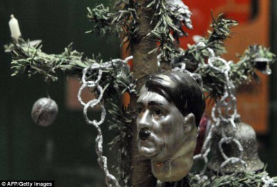 و استطاع الزوار رؤية رؤس هتلر المصنوعة من البورسلان التي تزين الشجرة بدلا من الاجراس و الكور الملونة او النجمة التي تزين قمة الشجرة.